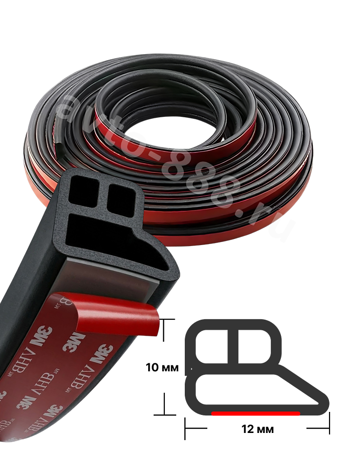 Уплотнитель автомобильный универсальный L-образный 3х камерный, самоклеящийся (3M) 16 метров NAKLRE-008