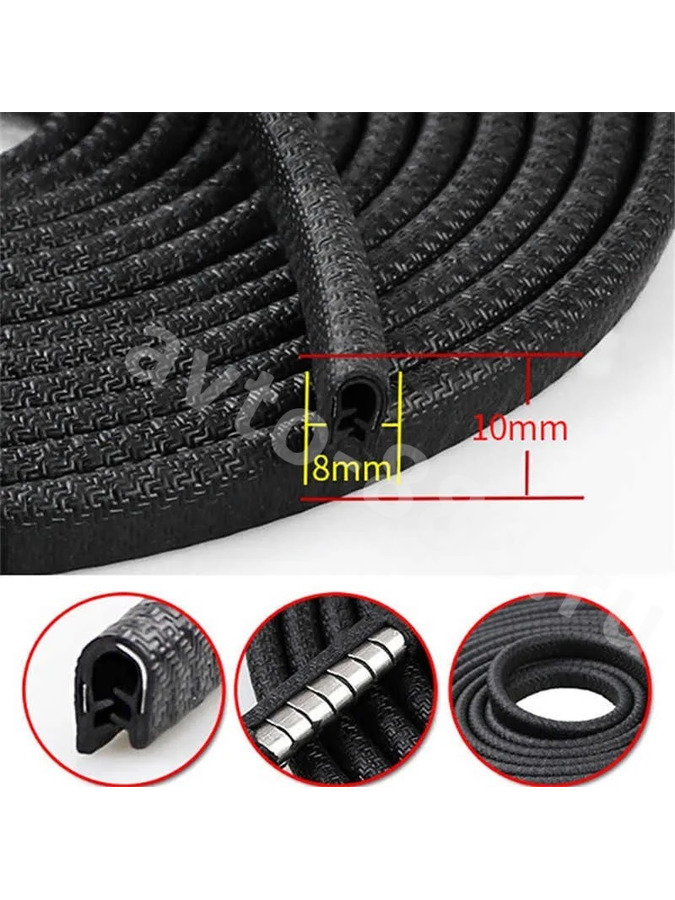 Уплотнитель на двери резинка/железо 10м, чёрный ACS-REZUP-022 avto-888.ru