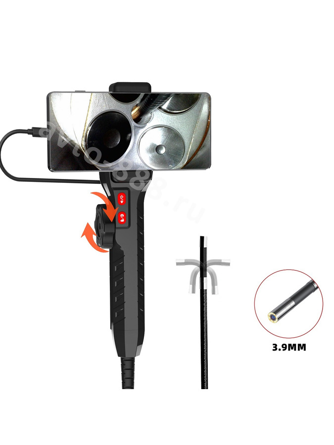 Эндоскоп автомобильный для телефона, длина зонда 1 метр, диаметр объектива 3.9 мм 13808 avto-888.ru