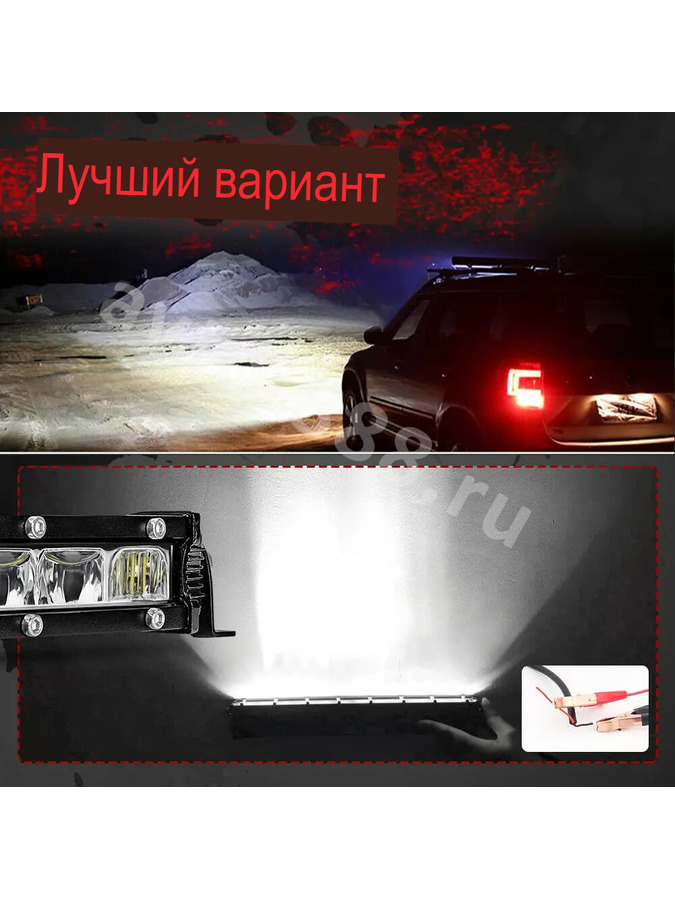 Наши балки пробивают снег, дождь и туман в отличии балок без линз, при использовании которых в непогоду будет "белая стена". Светодиодная фара в размере 50 см в ширину номера подойдет для установки под или над автомобильным госномером. Темные линзы позволят скрытно использовать балку. Благодаря линзам балка с СТГ ( Светотеневая граница ), которая использовать светодиодную люстру на дорогах общего пользования. Балка с СТГ не слепит встречных водителей. Балка дальнего света оснащена высокоэффективными диодами. Светодиодная балка класс защиты IP68 . Свет для бездорожья и трасс. Можно использовать как ДХО или ФСО. Светодиодная балка подойдет для квадроцикла. Балка в бампер авто -это безопасность на дороге. led bar не роскошь ,а безопасность на дороге. Cветодиодная фара на снегоход отлично справится с непогодой. Балка на катер не боится воды. Cвет на лодку подарок рыбаку и охотнику. Противотуманная фара для автомобиля. светодиодная балка на крышу. светодиодная балка дальнего света.Светодиодная балка делается в размере 18 до 130 см. Крепления изогнутые и для установки. Показатели температуры свечения составляют 5500-6000K.