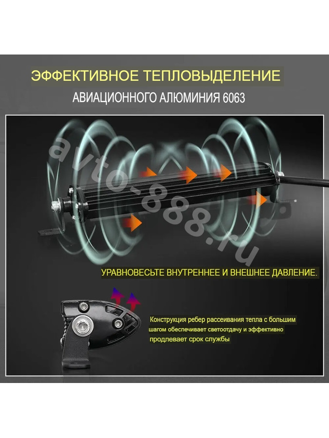 Изделие разработано для внедорожников, легковых, грузовых автомобилей, некоторых видов спецтехники. Фара работает в одном световом режиме, без переключения между рабочим и дальним светом. часть диодов обрамлены с гладкие чаши отражателей и формируют фокусированные дальние лучи.Корпус балки аллюминиевый - отводит тепло диодов и надежен в эксплуатации. Стекло - поликарбонатное -практично при небольших механических повреждениях в процессе использования.
