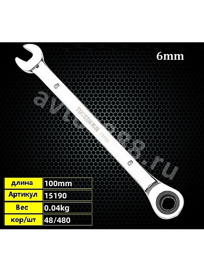Ключ гаечный с трещоткой 6мм 2335601 avto-888.ru