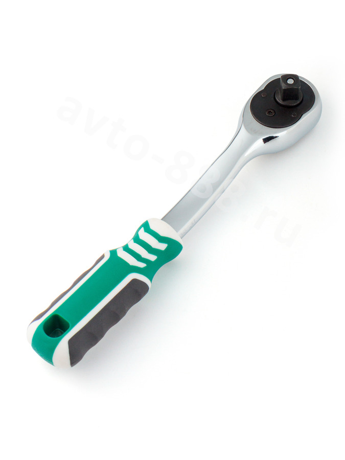 Трещотка для торцевых головок, Сr-V сталь, 72 зубца, 195мм 3/8 (изогнутый, зеленый) SATAVIP TRTG-08 avto-888.ru