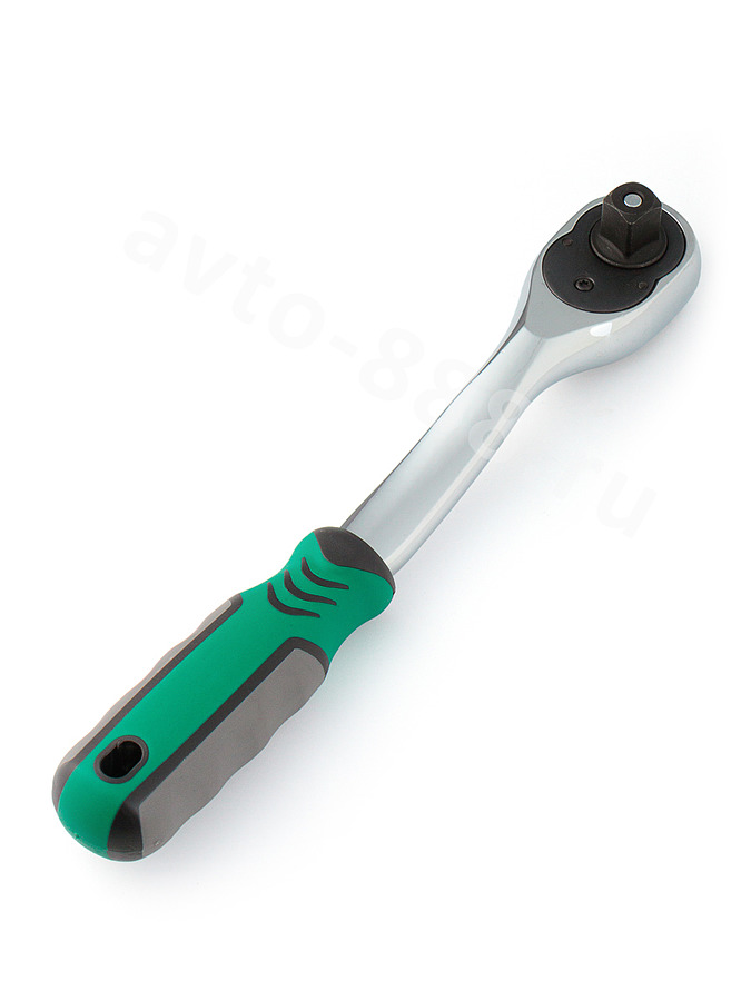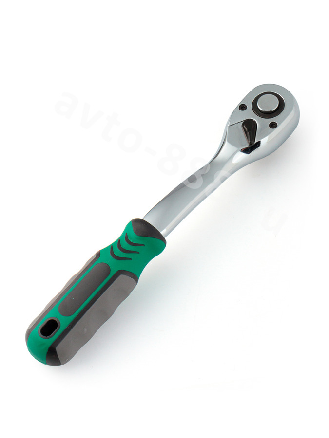 Трещотка для торцевых головок, Сr-V сталь, 72 зубца, 250мм 1/2 (изогнутый, зеленый) SATAVIP TRTG-07 avto-888.ru