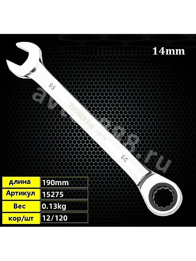 Ключ гаечный с трещоткой 14мм 2535626 avto-888.ru