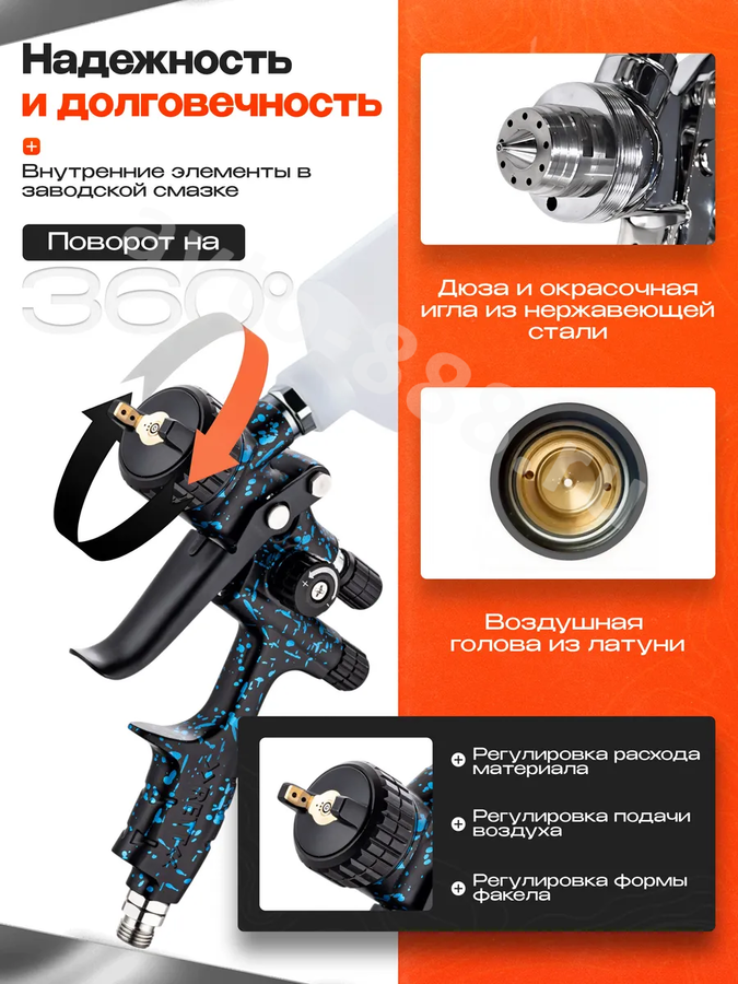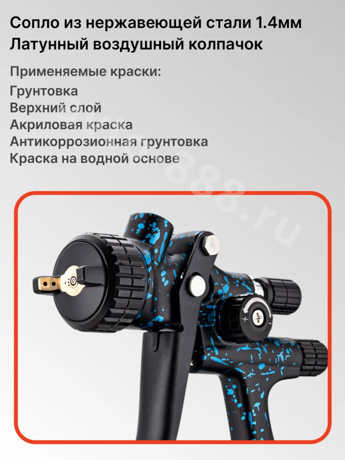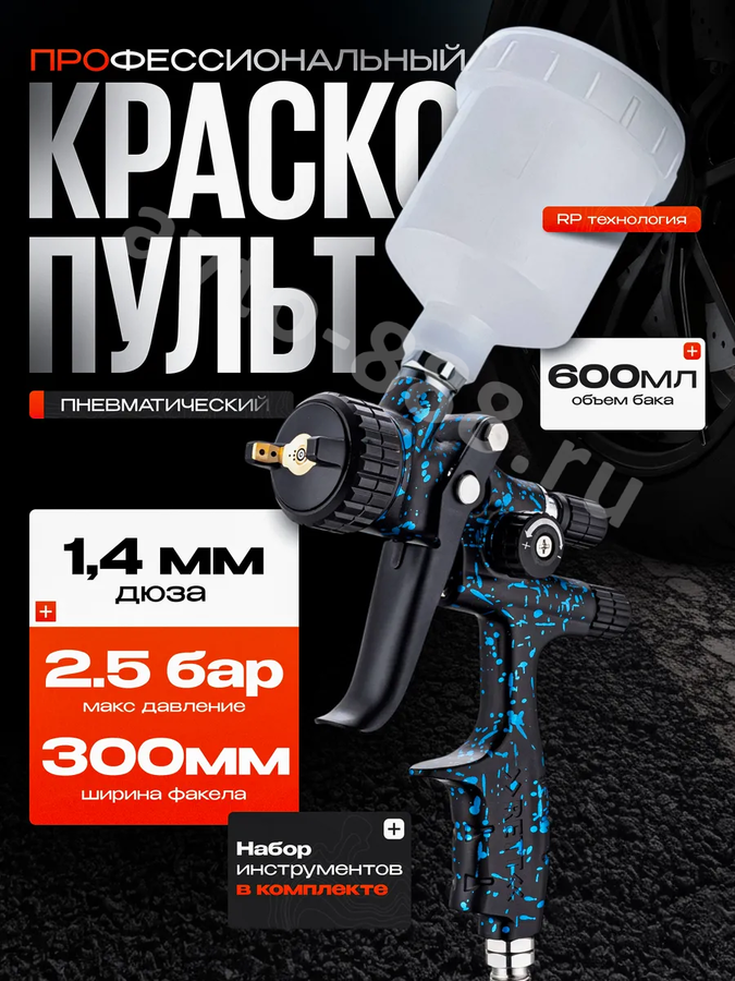 Краскопульт пневматический WJS1979 с верхним бачком 600мл WJS1979 avto-888.ru