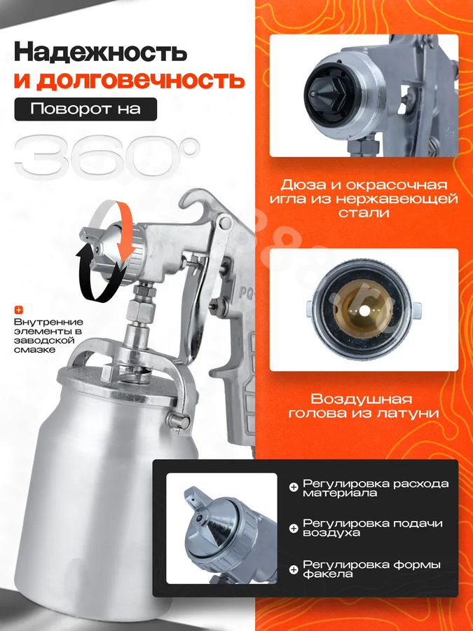 Краскораспылитель PQ-2 с нижним бачком 1000мл 19136