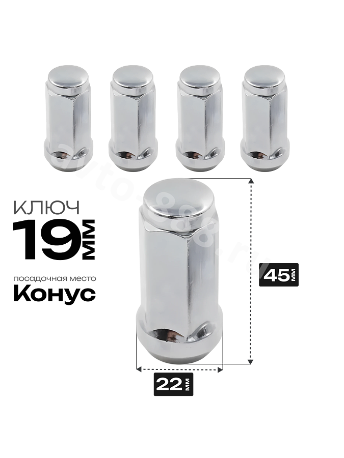 Гайка на колесо М14×1.5 конус (ключ 19) L45 хром (5шт) 1909L44 ACS-INSTR-1909L44