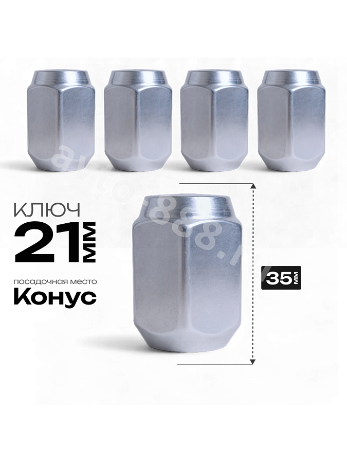 Гайка на колесо М12×1.25 конус (ключ 21) L35 хром (5шт) 1006L32 ACS-INSTR-1006L32 avto-888.ru