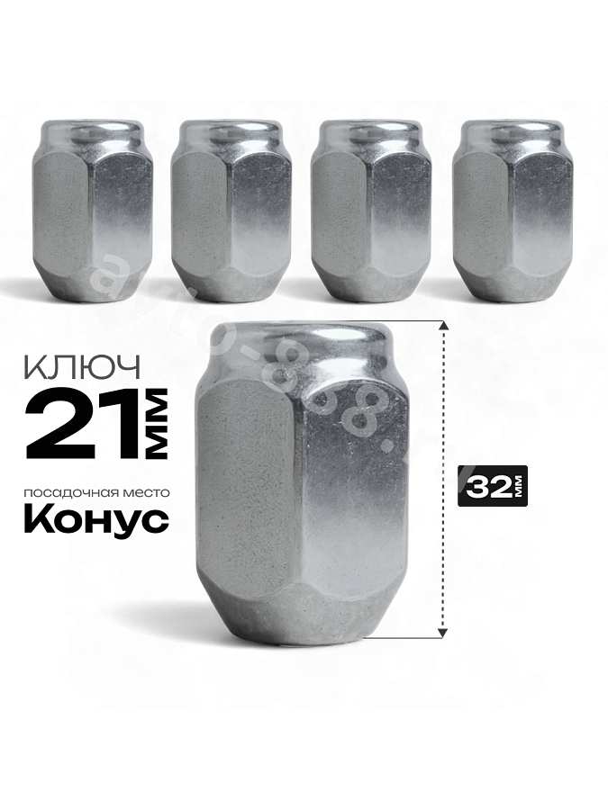 Гайка на колесо М12×1.5 конус (ключ 21) L32 хром (5шт) 1007SL30 ACS-INSTR-1007SL30