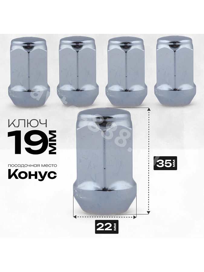 Гайка на колесо М12×1.25 конус (ключ 19) L35 хром (5шт) 1906 ACS-INSTR-1906 avto-888.ru