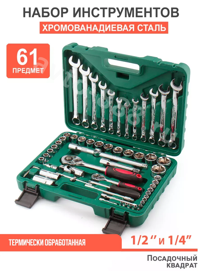 Набор инструментов SRUNV в кейсе 61 предметов зеленый G-10010