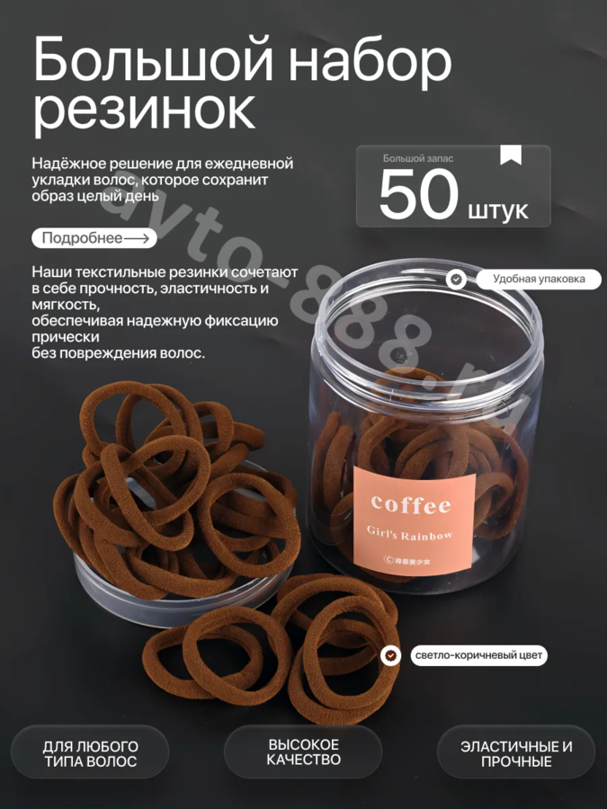 Резинки для волос 50шт коричневый 13908 avto-888.ru