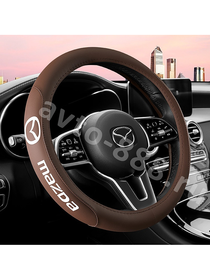 Оплетка на руль "MAZDA" (М) коричневый р-р 37-38 см ZE-08-1 avto-888.ru