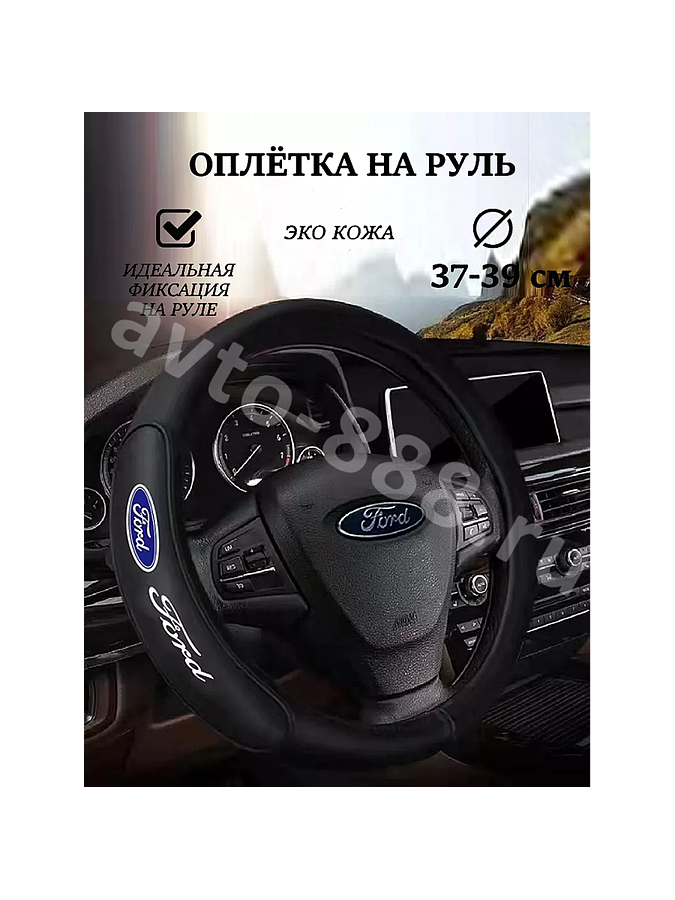 Накладка на автомобильный руль - это универсальный аксессуар из натуральной экокожи с широким функционалом. Преимущество данного чехла заключается в возможности перетяжки и обшивки руля с легкостью. Женский стиль присутствует благодаря превосходной оплетке, а также наличию надписи и логотипа автомобиля.Эта оплетка подходит для различных моделей машин: FORD. Смотрится стильно, Оплетка руля придаст особый шарм вашему рулю.Оплетка на руль 37-39см не только добавит индивидуальности вашему авто, но и обеспечит комфорт при управлении машинкой- для любого автовладельца можно подобрать подходящий вариант.Главное преимущество этого аксессуара заключается в возможности тюнинга своего руля без лишних затрат. Эта оплетка легко устанавливается и заставит ваш автомобиль выглядеть на высоте.