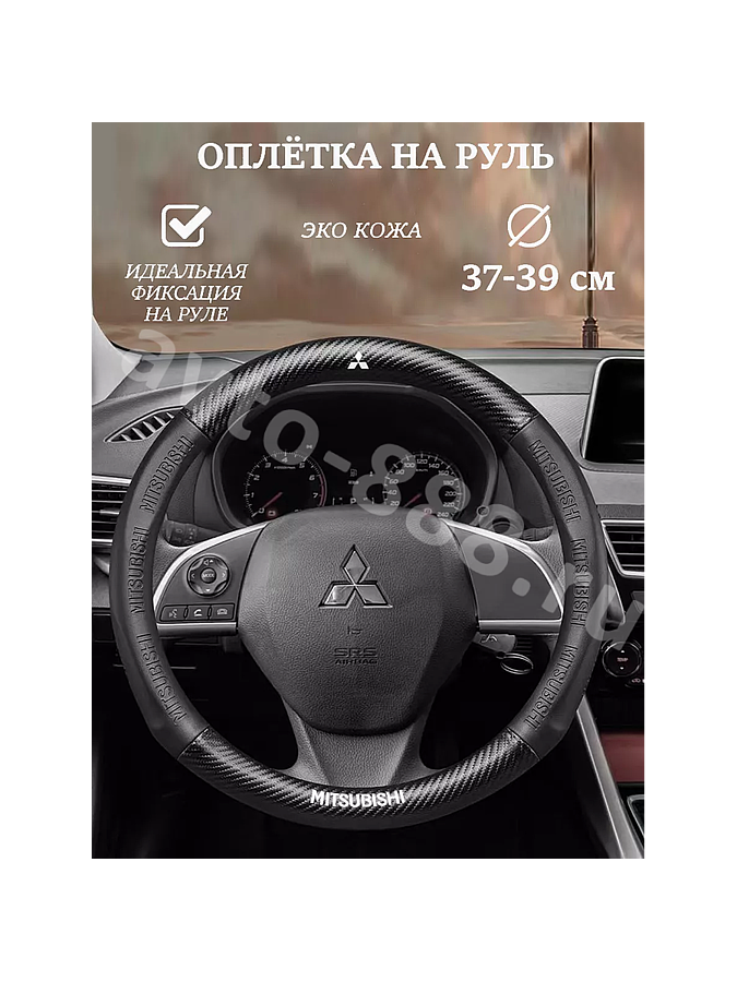 Оплётка на руль MITSUBISHI кожа+карбон (М) чёрный р-р 37-38 см HT-MT19