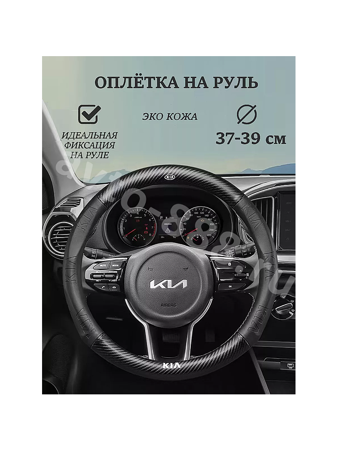 Оплётка на руль KIA кожа+карбон (М) чёрный р-р 37-38 см HT-KI17