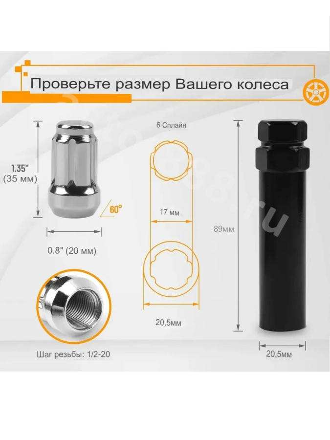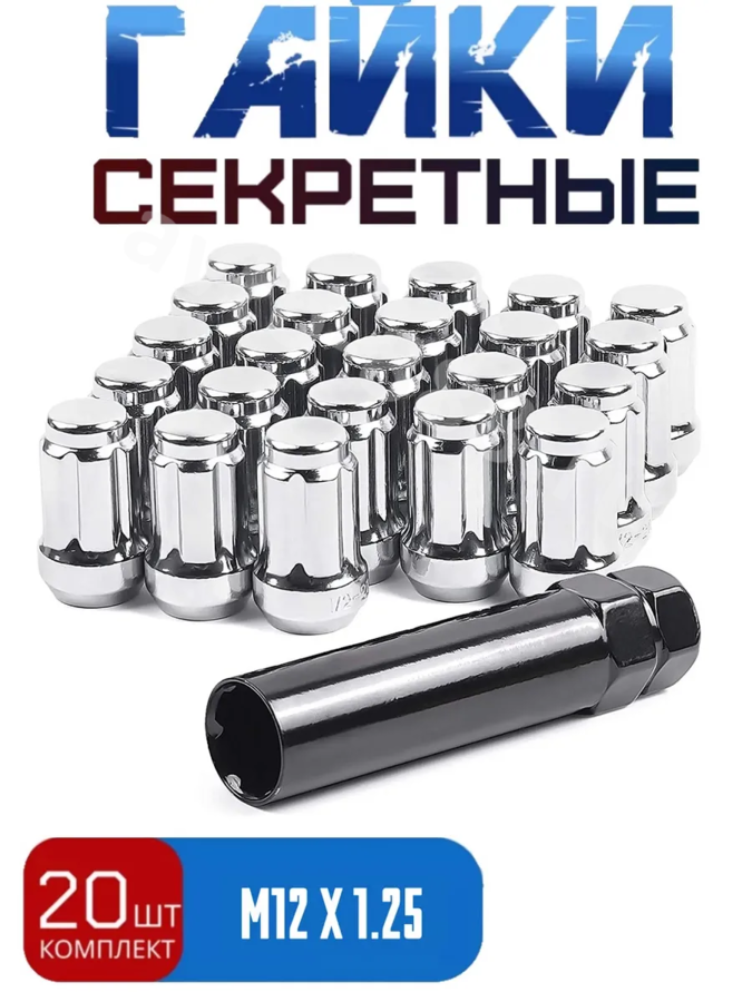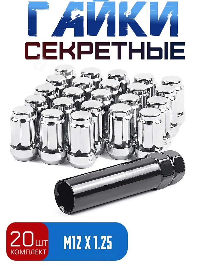 Секретки гайки 12*1,25 N038 (комплект 20 шт, ключ 17) хром ACS-INSTR-N038-4