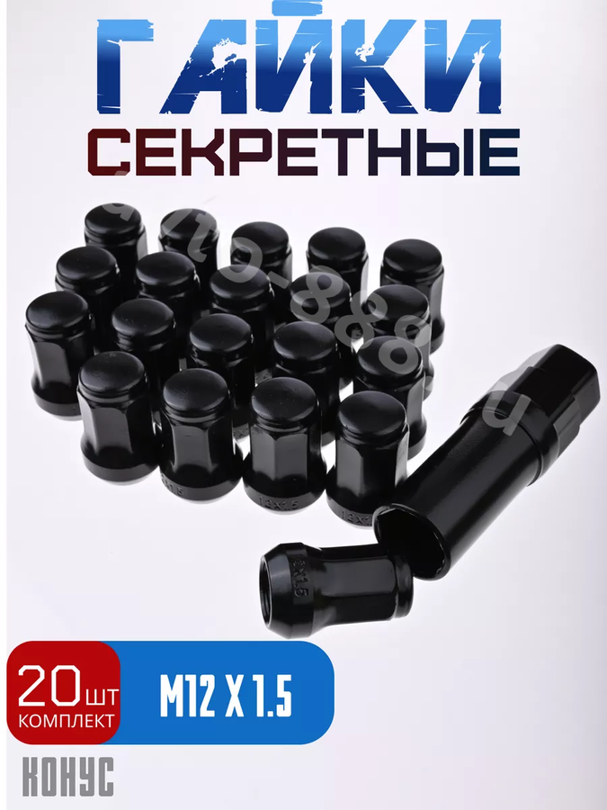 Секретки гайки 12*1,5 N042 (комплект 20 шт, ключ 17) чёрный ACS-INSTR1007