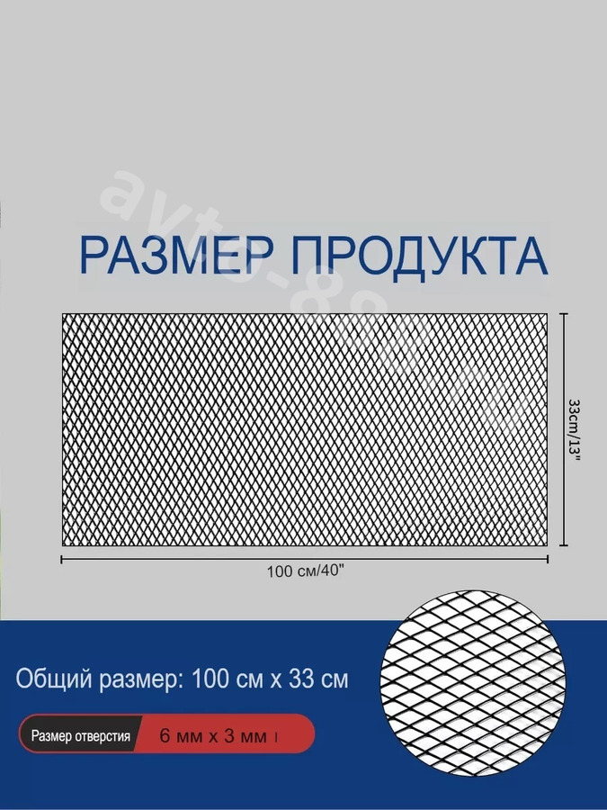 Сетка на решетку ячейка 3х6мм алюминиевая чёрная (1000*330мм) МЕЛКАЯ 7199 avto-888.ru