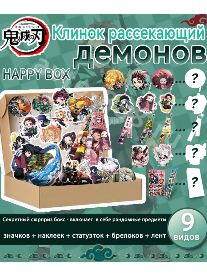 Подарочный Mystery Box "Клинок рассекающий демонов" — 9 уникальных сюрпризов для настоящих фанатов! Каждый бокс — неповторимый набор! Закажите один, пять или десять раз — и каждый раз вас ждут новые аксессуары с любимыми персонажами. Внутри 9 предметов: эксклюзивные значки, стикеры, блокноты, постеры, магниты и другие коллекционные мелочи. Никогда не знаешь, что найдешь в следующий раз — как настоящий клад для фаната аниме! Почему выбирают наш Mystery Box? 9 сюрпризов в каждом! Никаких повторений — уникальные комбинации картинок, дизайнов и аксессуаров. Эксклюзивные дизайны: Только оригинальные арты из вселенной "Клинка рассекающего демонов". Качество на первом месте: Все предметы из плотного пластика, металла или премиальной бумаги. Идеально для коллекционеров: Соберите все варианты постеров, значков и стикеров! Кому подарить? Подруге или другу, которые обожают Тандзиро, Нэзуко и других героев. Подростку на день рождения, Новый год или просто без повода. Себе, чтобы добавить аниме-атмосферы в повседневность. Что внутри? Примеры рандомных предметов: Значок с символом «Водного дыхания». Стикеры с Заницу и Мицури. Мини-постер формата А5. Магнит с демоном Музаном. Тетрадь в стиле «Корпуса убийц демонов». Брелок с мечом Нитирина. Карточка с артом Кёдзюро Ренгоку. Закладка с цитатами из аниме. Сюрприз-экстра (может быть любым — от браслета до мини-фигурки!). Почему это выгодно? Дешевле, чем покупать по отдельности! 9 предметов по цене 5. Нескучно: Дарите бокс несколько раз — и получатель каждый раз будет в восторге. Стильная упаковка: Коробка с принтом «Хиноками Кагура» — сохранит память даже после распаковки.