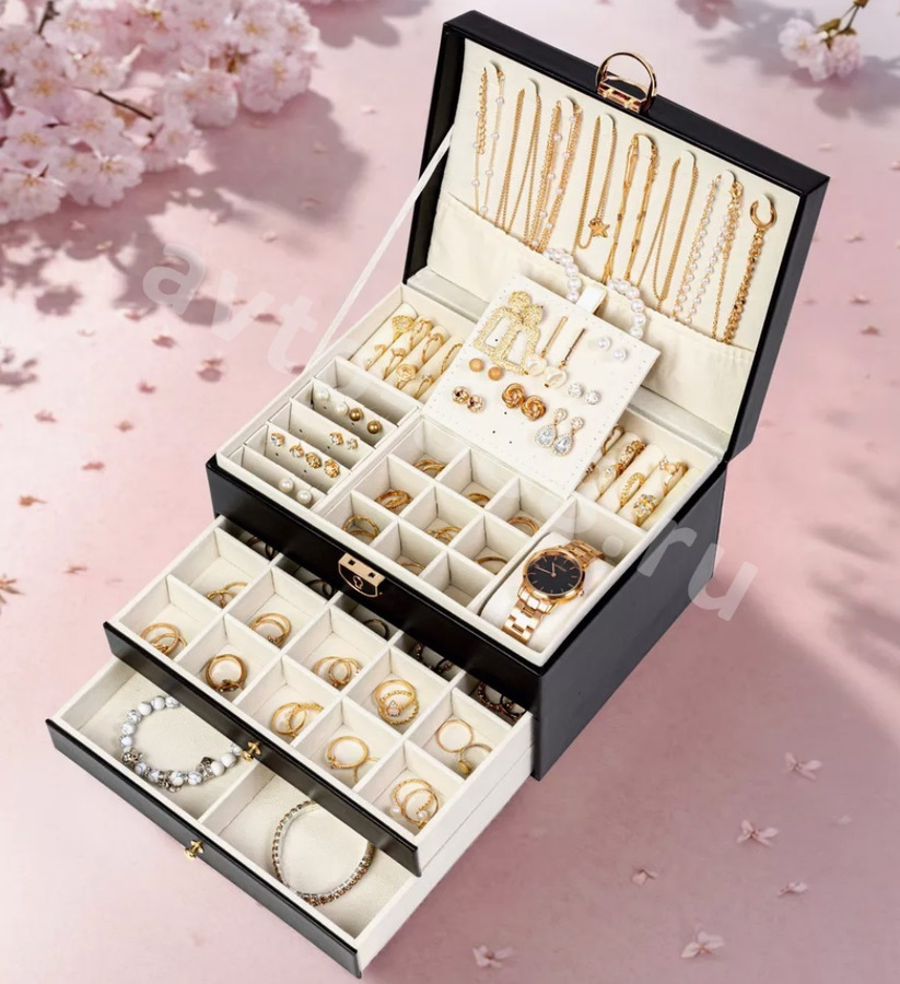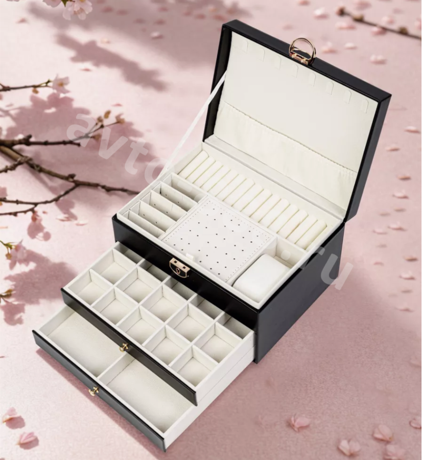 Шкатулка для украшений большая чёрный 13961 avto-888.ru