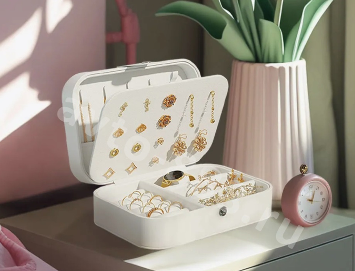 Шкатулка для украшений — идеальный вариант для девушек и женщин любого возраста. Она не только помогает удобно хранить драгоценности, бижутерию и аксессуары, но и дополняет интерьер элегантным штрихом. Шкатулка изготовлена из экокожи: это прочный, износостойкий и простой в уходе материал. Внутри — продуманная организация пространства: отделения для колец, сережек, браслетов и часов, а также дополнительные выдвижные отделения для более крупных вещей. Каждое из них спроектировано так, чтобы украшения оставались в идеальном порядке, защищенными от пыли и повреждений. Такой подарок понравится маме, сестре, подруге или коллеге. Это не просто место для хранения, а особый аксессуар, который сохранит воспоминания о важных моментах. Ее дизайн универсален: шкатулка органично впишется и в детскую комнату, и в современный кабинет. Закрытая на замочек, она надежно защитит ваши ценности, включая золотые украшения и кулоны. Ее можно брать с собой в поездки или использовать дома — в любом случае она останется функциональной и стильной. Эта элегантная шкатулка добавит уюта в интерьер и подчеркнет вашу заботу о близких. Выбирая ее, вы выбираете порядок, качество и хороший вкус. Подарите себе или любимым людям этот прекрасный аксессуар!