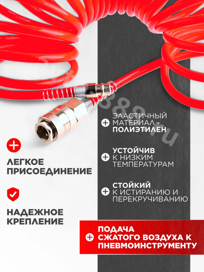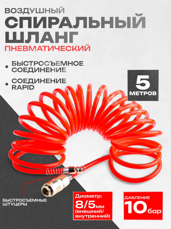 Шланг спиральный для компрессора, с быстросъемным соединением 5м QG-05 avto-888.ru