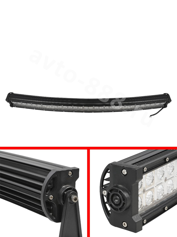 Светодиодная двухрядная фара (балка) с прямоугольной формой корпуса, изогнутой конструкцией и комбинированным световым лучом (направленный свет 30° + рассеянный свет 60°) обеспечивает мощное и равномерное освещение.