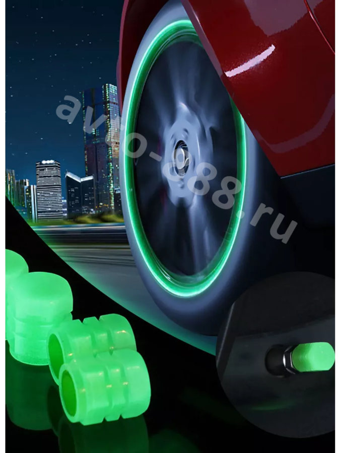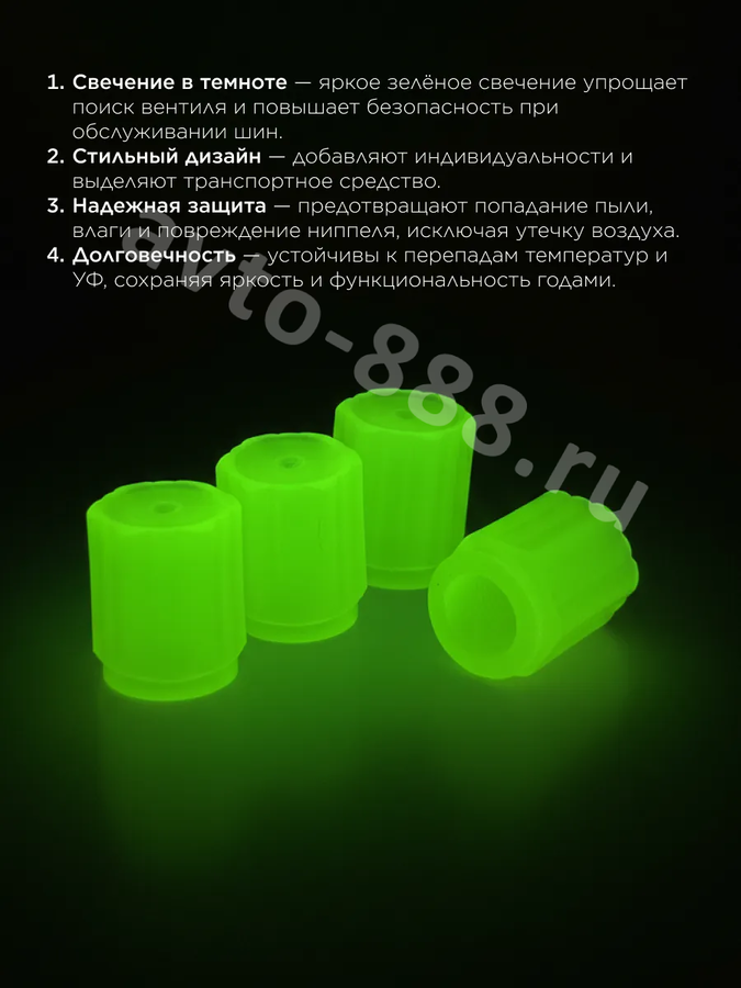 Колпачок ниппеля универсальный 4шт. светящийся зелёный ACS-SBK010 avto-888.ru
