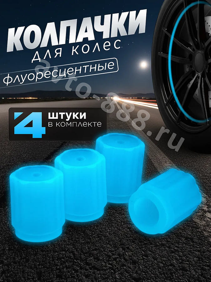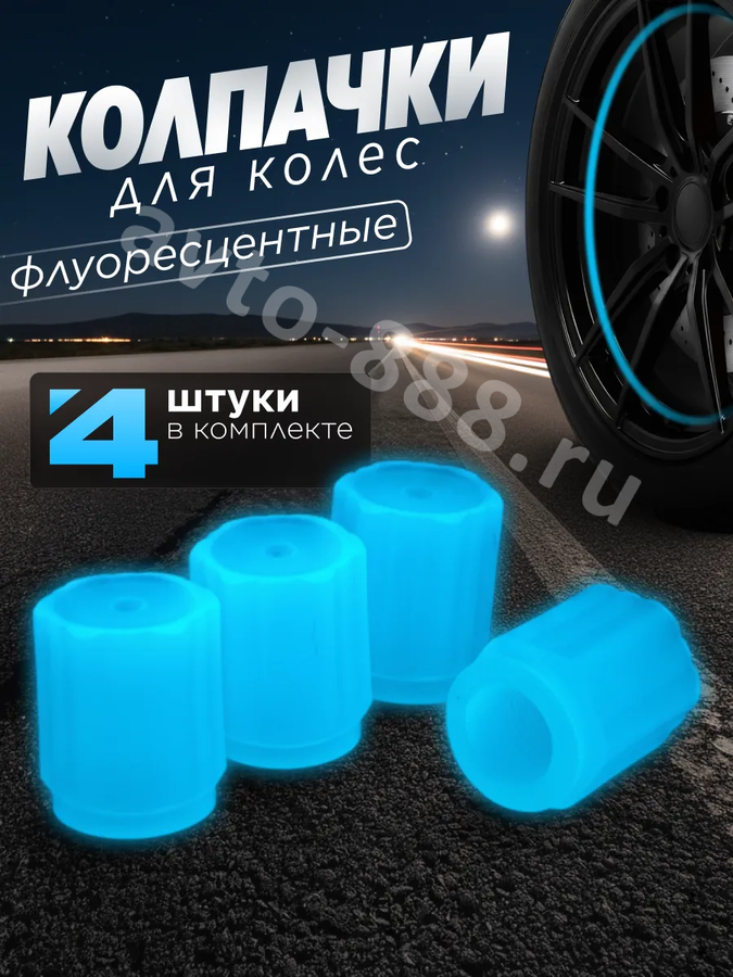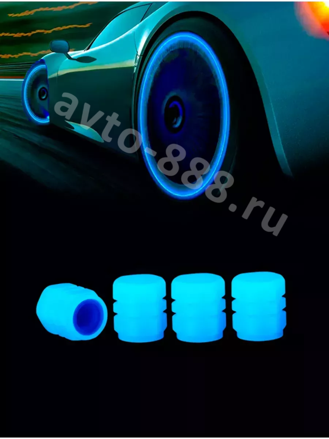 Колпачок ниппеля универсальный 4шт. светящийся синий ACS-SBK011 avto-888.ru