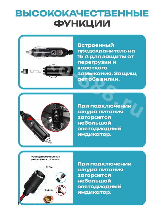 Удлинитель прикуривателя на 3 метра — это незаменимый аксессуар для любого автомобиля. Он позволит вам удобно использовать автомобильные приборы, такие как зарядные устройства, компрессоры и навигаторы, даже если розетка прикуривателя расположена неудобно. Длина кабеля 1.5 метра даёт вам свободу действий и позволяет подключить устройство в любом месте салона. Удлинитель совместим с любыми автомобилями, работающими от 12-24 вольт.